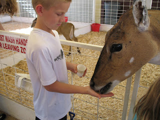 "Carneys" are people I would not normally think of as 'generous', but after Caleb played the game where you throw the ball at the 3 milk jugs (painted cinder blocks in the shape of milk jugs), and knocked down only 2 each time, we began to walk away. He called Caleb back and said "one more ball", and held his hand in front of the milk jugs. Caleb threw again, hit his hand, and the guy knocked the jugs over with his hand and exlaimed "WINNER." He then takes this huge car down and gives it to Caleb. It was one of the genuinely nicest things I've ever seen displayed, and I will forever see "carneys" different now. And I was thankful this happened near the end of the day so we didn't have to lug this thing around for hours.